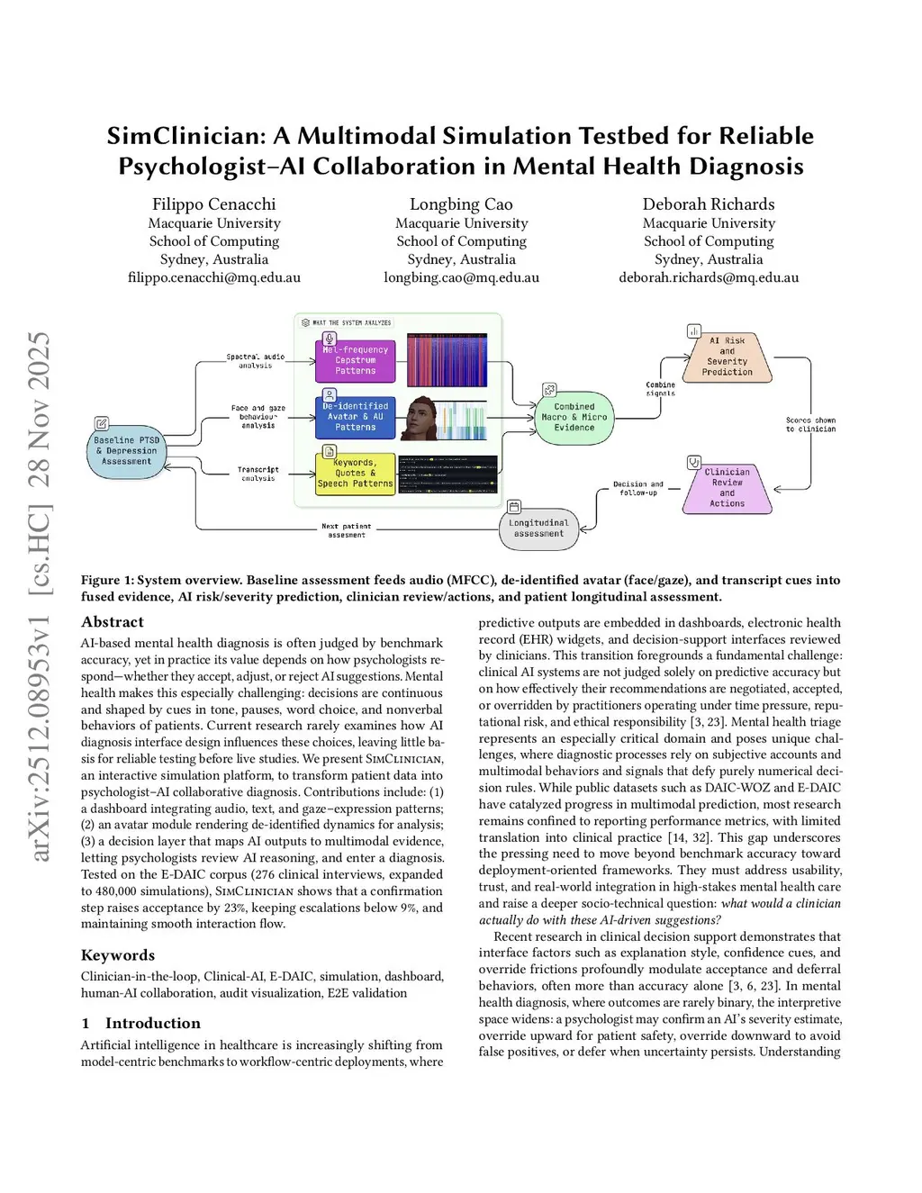 SimClinician: A Multimodal Simulation Testbed for Reliable Psychologist AI Collaboration in Mental Health Diagnosis
