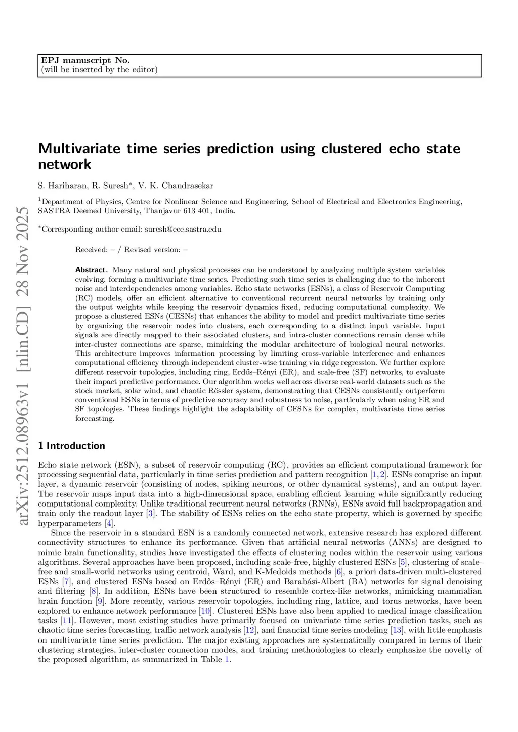 Many natural and physical processes can be understood by analyzing multiple system variables evolving, forming a multivariate time series. Predicting such time series is challenging due to the inherent noise and interdependencies among variables. Echo state networks (ESNs), a class of Reservoir Computing (RC) models, offer an efficient alternative to conventional recurrent neural networks by training only the output weights while keeping the reservoir dynamics fixed, reducing computational complexity. We propose a clustered ESNs (CESNs) that enhances the ability to model and predict multivariate time series by organizing the reservoir nodes into clusters, each corresponding to a distinct input variable. Input signals are directly mapped to their associated clusters, and intra-cluster connections remain dense while inter-cluster connections are sparse, mimicking the modular architecture of biological neural networks. This architecture improves information processing by limiting cross-variable interference and enhances computational efficiency through independent cluster-wise training via ridge regression. We further explore different reservoir topologies, including ring, Erdős-Rényi (ER), and scale-free (SF) networks, to evaluate their impact predictive performance. Our algorithm works well across diverse real-world datasets such as the stock market, solar wind, and chaotic Rössler system, demonstrating that CESNs consistently outperform conventional ESNs in terms of predictive accuracy and robustness to noise, particularly when using ER and SF topologies. These findings highlight the adaptability of CESNs for complex, multivariate time series forecasting.