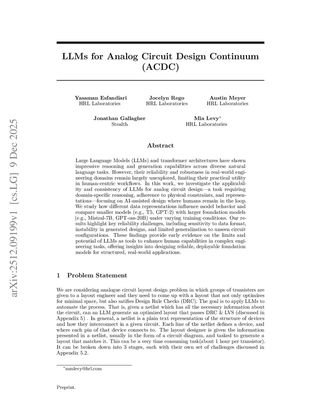LLMs for Analog Circuit Design Continuum (ACDC)