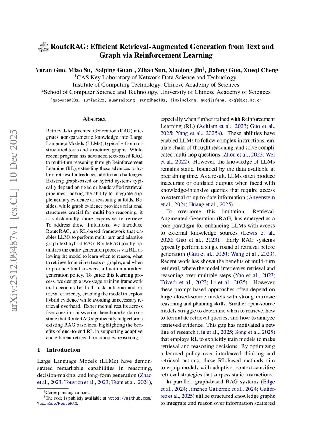 RouteRAG: Efficient Retrieval-Augmented Generation from Text and Graph via Reinforcement Learning