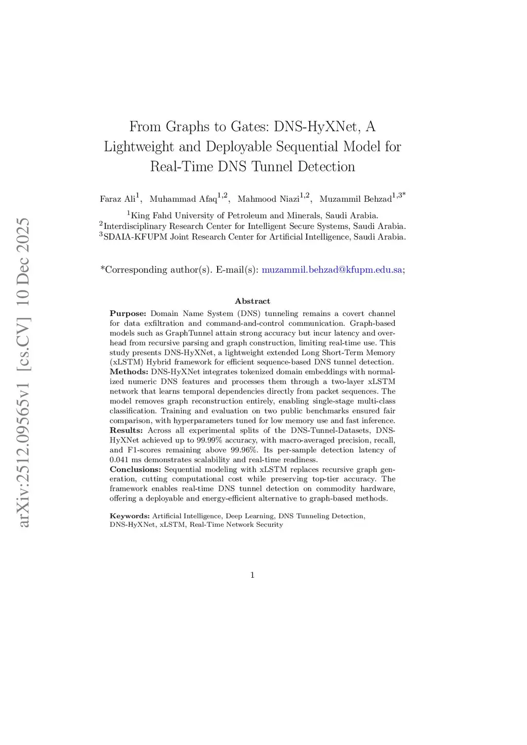 From Graphs to Gates: DNS-HyXNet, A Lightweight and Deployable Sequential Model for Real-Time DNS Tunnel Detection