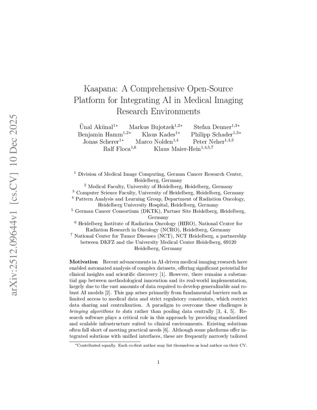Kaapana: A Comprehensive Open-Source Platform for Integrating AI in Medical Imaging Research Environments