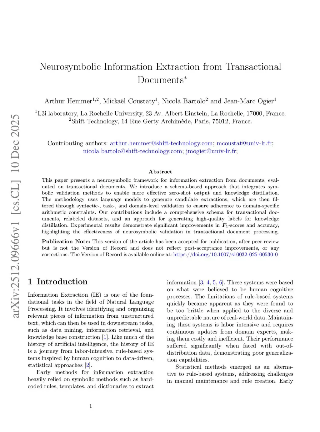 Neurosymbolic Information Extraction from Transactional Documents