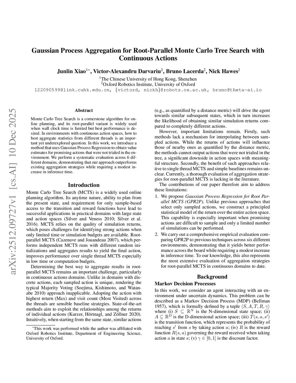 Gaussian Process Aggregation for Root-Parallel Monte Carlo Tree Search with Continuous Actions
