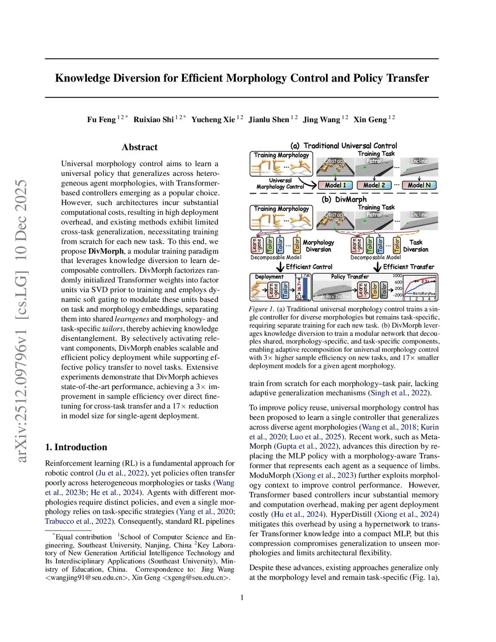 Knowledge Diversion for Efficient Morphology Control and Policy Transfer