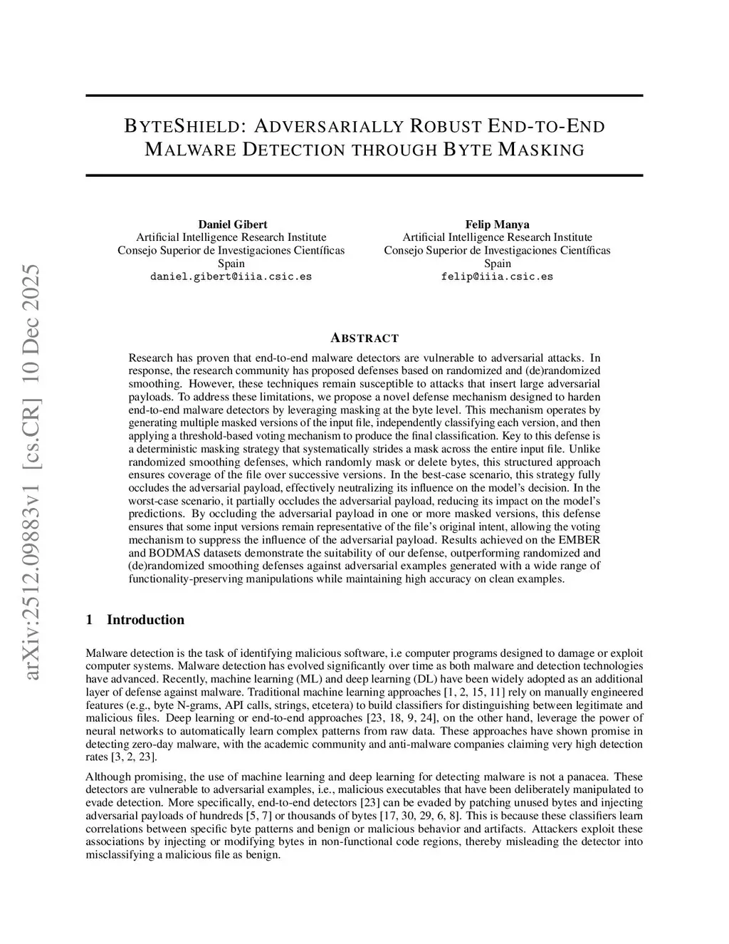 ByteShield: Adversarially Robust End-to-End Malware Detection through Byte Masking