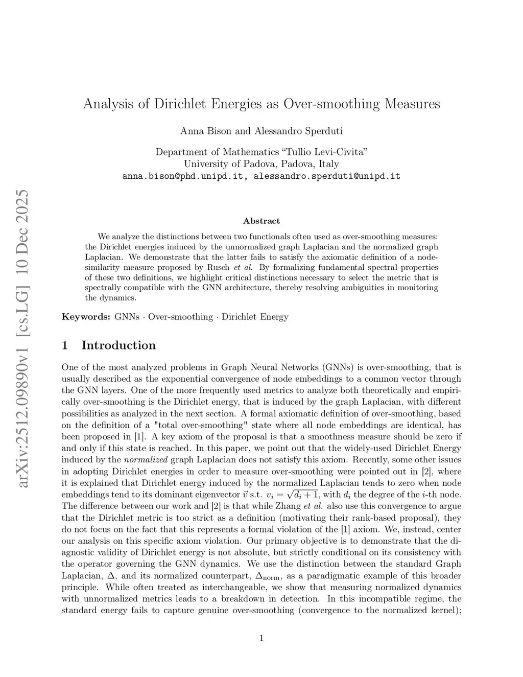 We analyze the distinctions between two functionals often used as over-smoothing measures: the Dirichlet energies induced by the unnormalized graph Laplacian and the normalized graph Laplacian. We demonstrate that the latter fails to satisfy the axiomatic definition of a node-similarity measure proposed by Rusch \textit{et al.} By formalizing fundamental spectral properties of these two definitions, we highlight critical distinctions necessary to select the metric that is spectrally compatible with the GNN architecture, thereby resolving ambiguities in monitoring the dynamics.