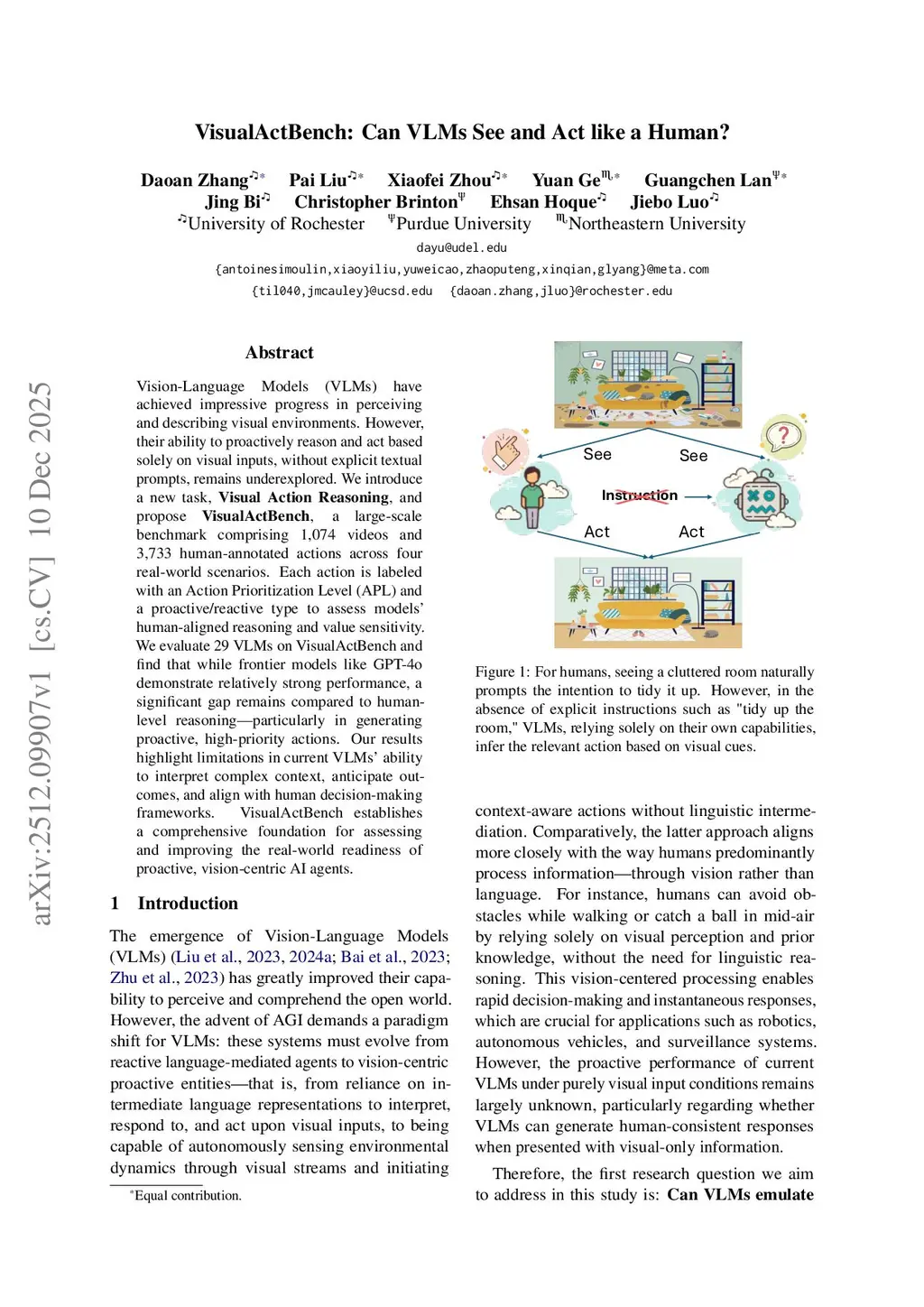 Vision-Language Models (VLMs) have achieved impressive progress in perceiving and describing visual environments. However, their ability to proactively reason and act based solely on visual inputs, without explicit textual prompts, remains underexplored. We introduce a new task, Visual Action Reasoning, and propose VisualActBench, a large-scale benchmark comprising 1,074 videos and 3,733 human-annotated actions across four real-world scenarios. Each action is labeled with an Action Prioritization Level (APL) and a proactive-reactive type to assess models' human-aligned reasoning and value sensitivity. We evaluate 29 VLMs on VisualActBench and find that while frontier models like GPT4o demonstrate relatively strong performance, a significant gap remains compared to human-level reasoning, particularly in generating proactive, high-priority actions. Our results highlight limitations in current VLMs' ability to interpret complex context, anticipate outcomes, and align with human decision-making frameworks. VisualActBench establishes a comprehensive foundation for assessing and improving the real-world readiness of proactive, vision-centric AI agents.