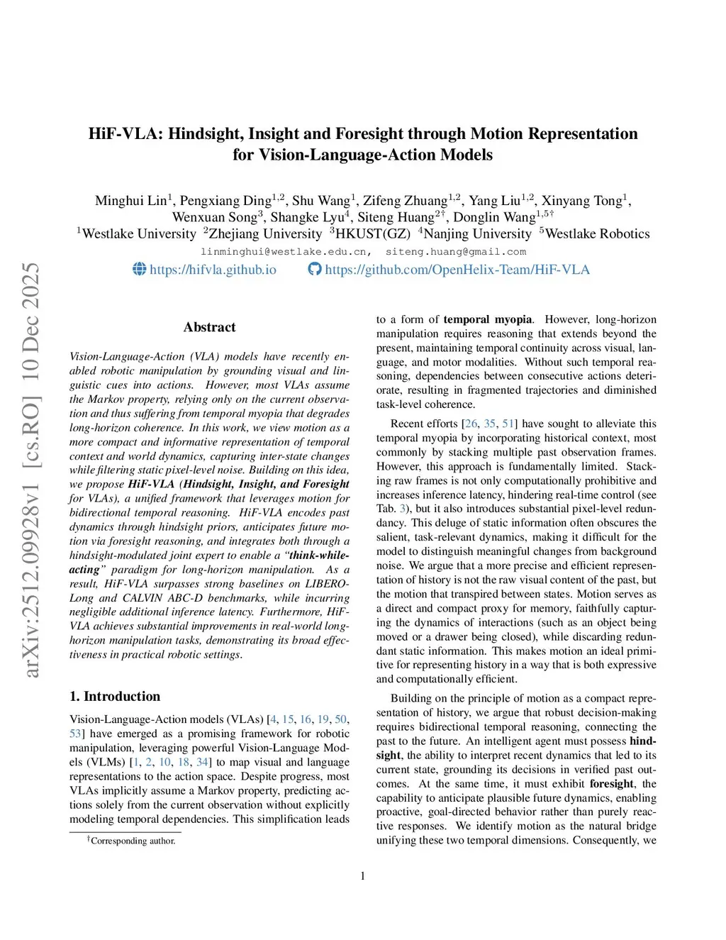 HiF-VLA: Hindsight, Insight and Foresight through Motion Representation for Vision-Language-Action Models
