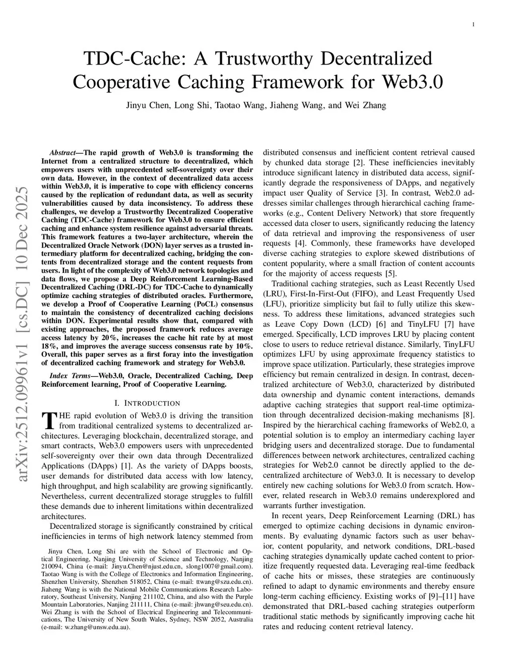 TDC-Cache: A Trustworthy Decentralized Cooperative Caching Framework for Web3.0