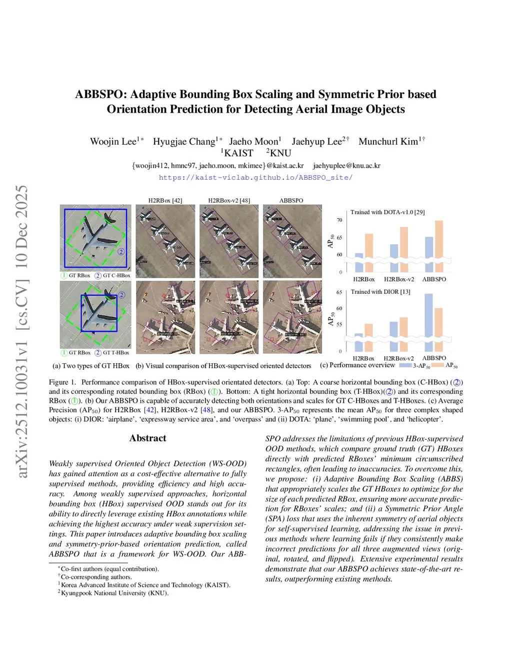 ABBSPO: Adaptive Bounding Box Scaling and Symmetric Prior based Orientation Prediction for Detecting Aerial Image Objects