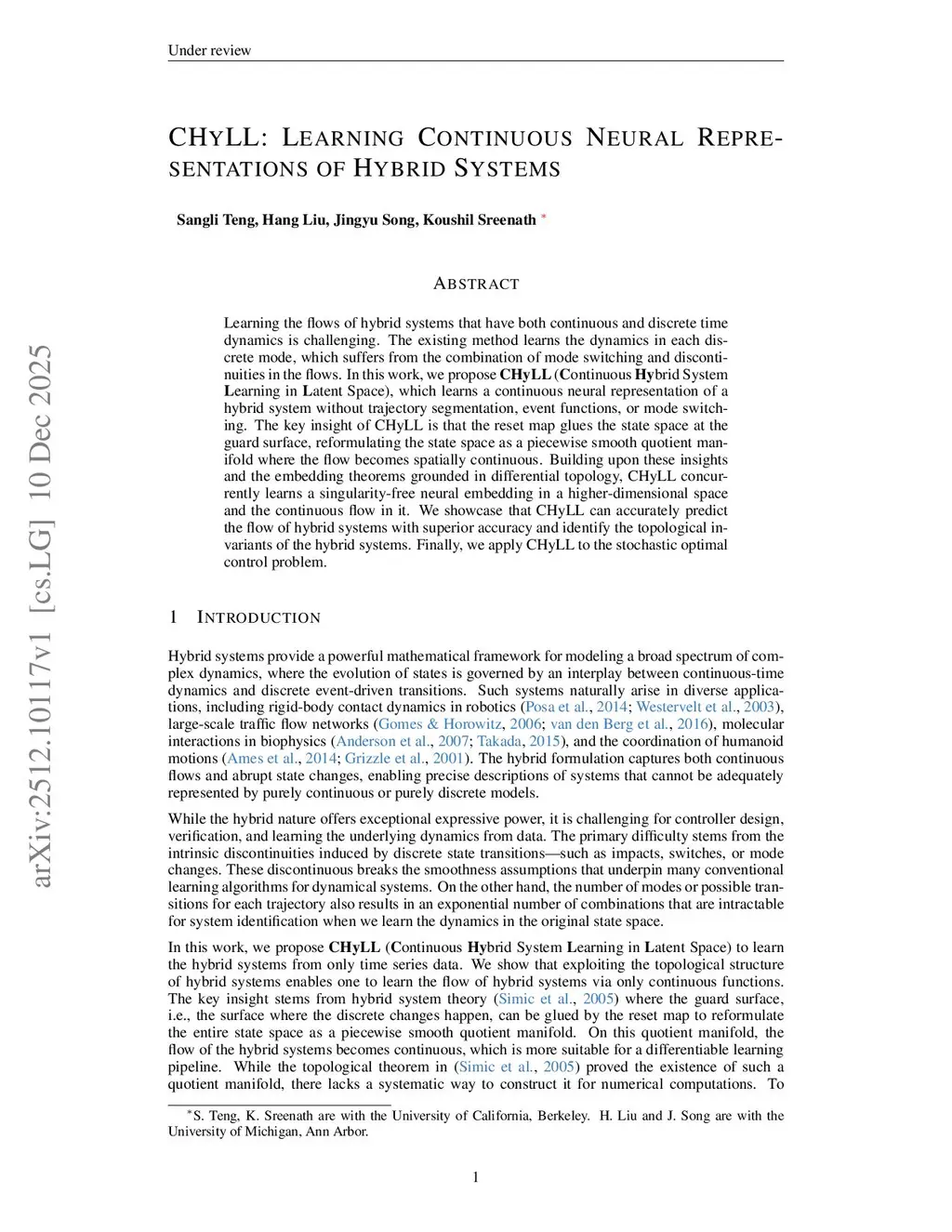 CHyLL: Learning Continuous Neural Representations of Hybrid Systems