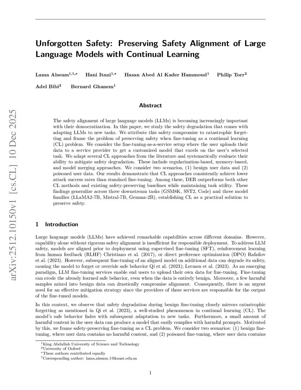 Unforgotten Safety: Preserving Safety Alignment of Large Language Models with Continual Learning