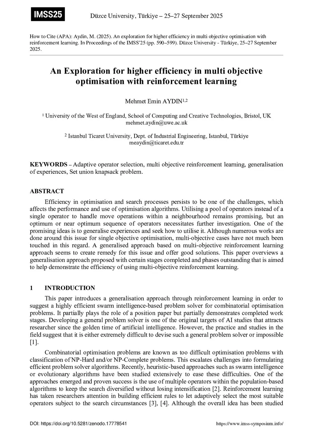 An exploration for higher efficiency in multi objective optimisation with reinforcement learning