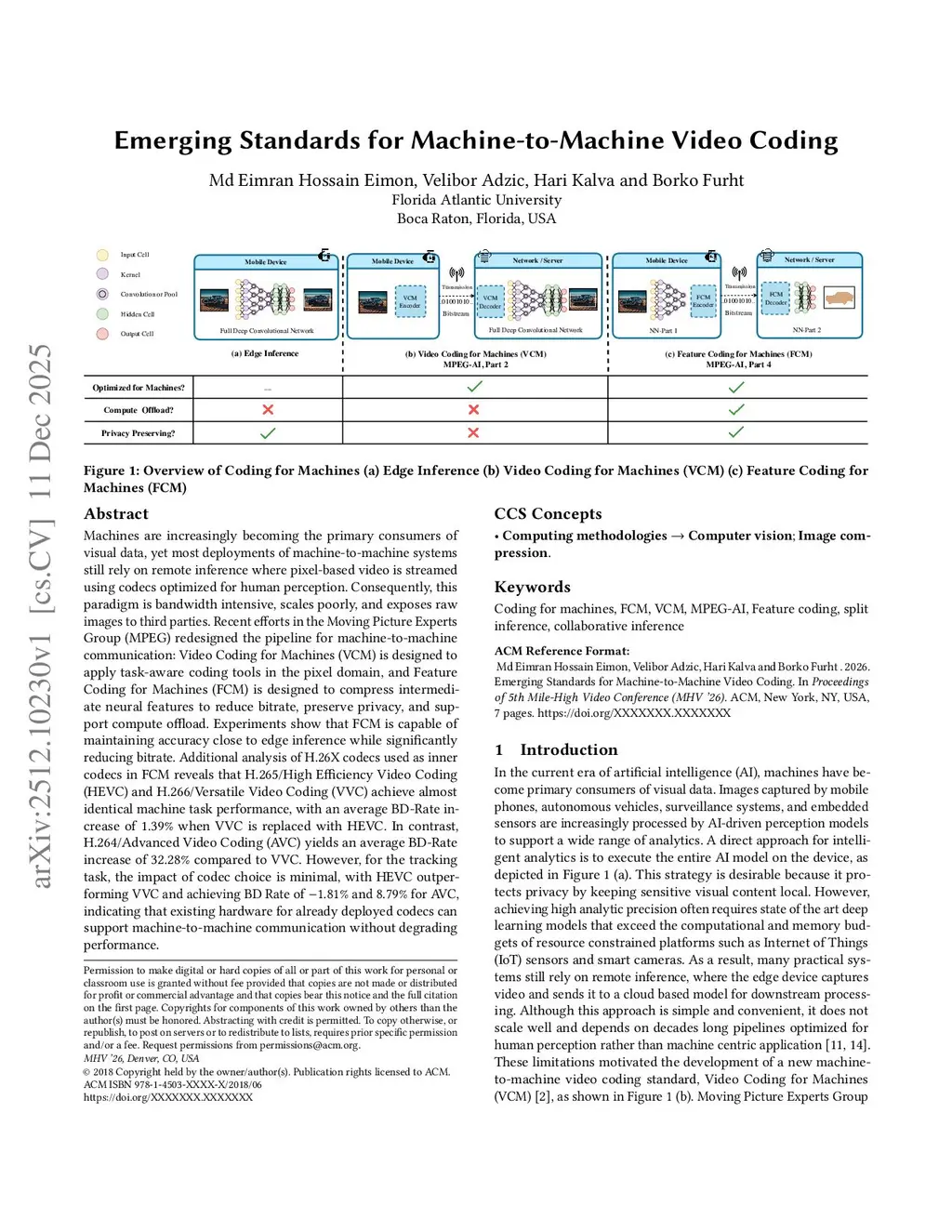 Machines are increasingly becoming the primary consumers of visual data, yet most deployments of machine-to-machine systems still rely on remote inference where pixel-based video is streamed using codecs optimized for human perception. Consequently, this paradigm is bandwidth intensive, scales poorly, and exposes raw images to third parties. Recent efforts in the Moving Picture Experts Group (MPEG) redesigned the pipeline for machine-to-machine communication: Video Coding for Machines (VCM) is designed to apply task-aware coding tools in the pixel domain, and Feature Coding for Machines (FCM) is designed to compress intermediate neural features to reduce bitrate, preserve privacy, and support compute offload. Experiments show that FCM is capable of maintaining accuracy close to edge inference while significantly reducing bitrate. Additional analysis of H.26X codecs used as inner codecs in FCM reveals that H.265/High Efficiency Video Coding (HEVC) and H.266/Versatile Video Coding (VVC) achieve almost identical machine task performance, with an average BD-Rate increase of 1.39% when VVC is replaced with HEVC. In contrast, H.264/Advanced Video Coding (AVC) yields an average BD-Rate increase of 32.28% compared to VVC. However, for the tracking task, the impact of codec choice is minimal, with HEVC outperforming VVC and achieving BD Rate of -1.81% and 8.79% for AVC, indicating that existing hardware for already deployed codecs can support machine-to-machine communication without degrading performance.