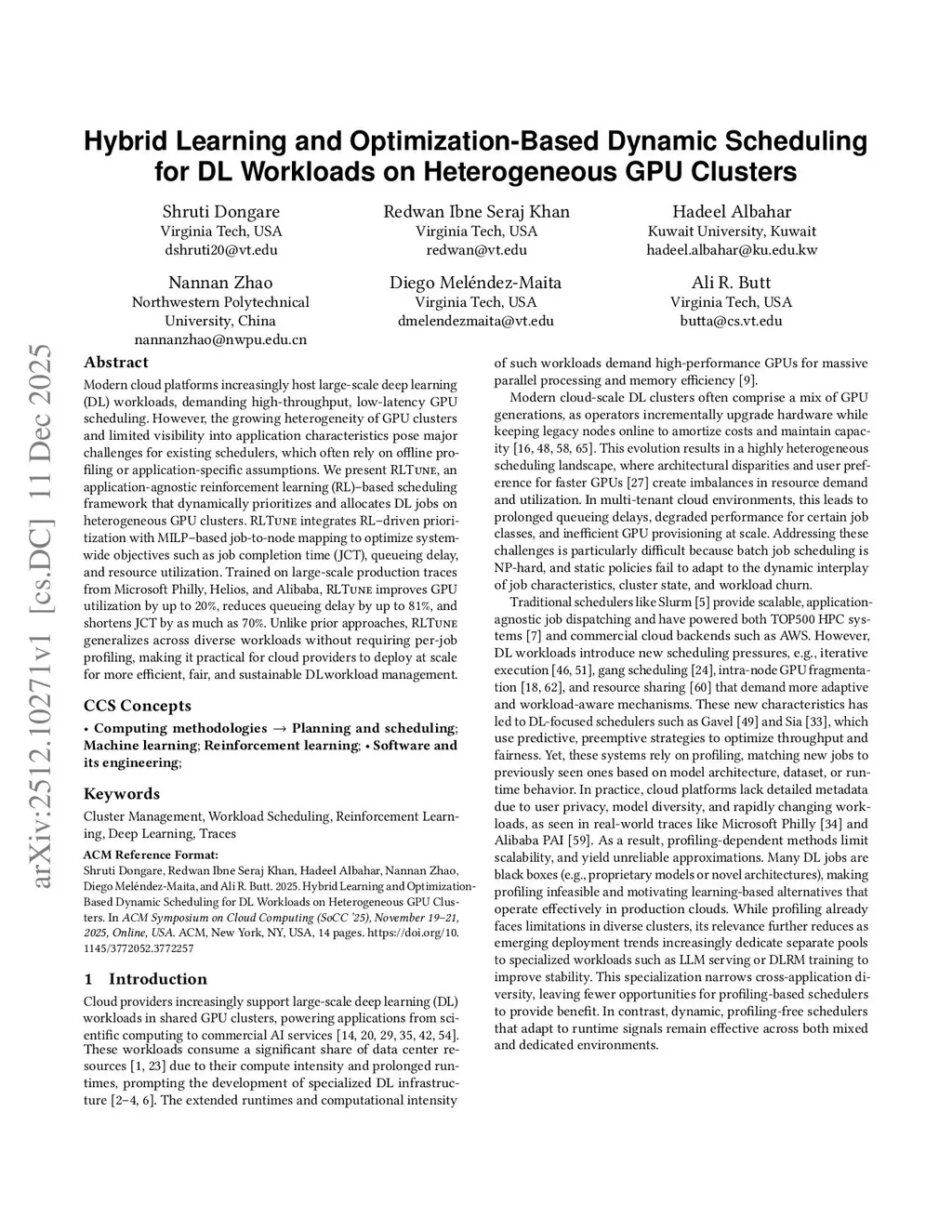 Hybrid Learning and Optimization-Based Dynamic Scheduling for DL Workloads on Heterogeneous GPU Clusters