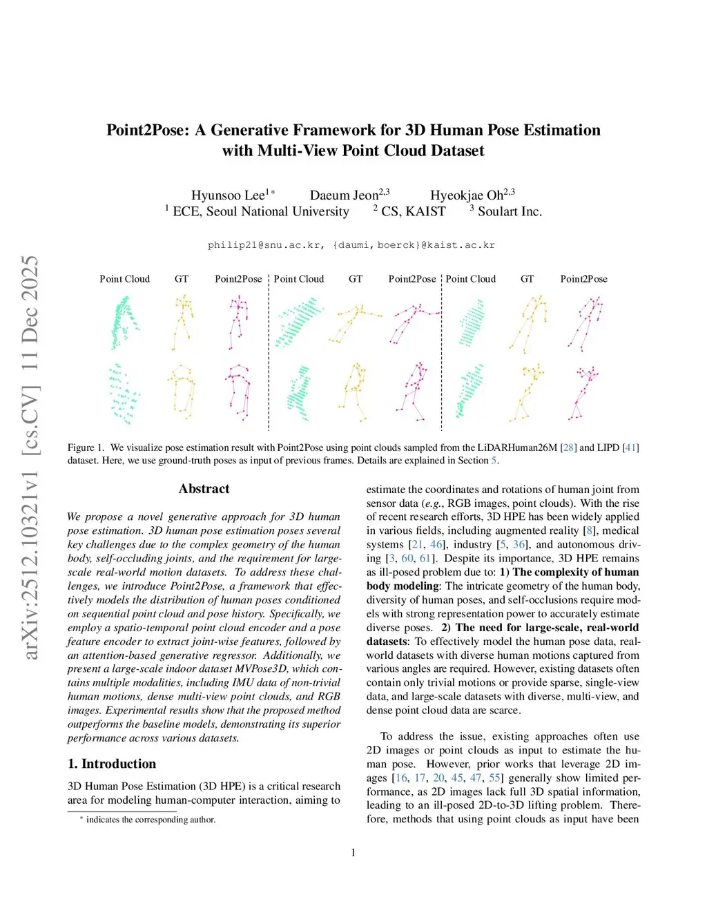 Point2Pose: A Generative Framework for 3D Human Pose Estimation with Multi-View Point Cloud Dataset