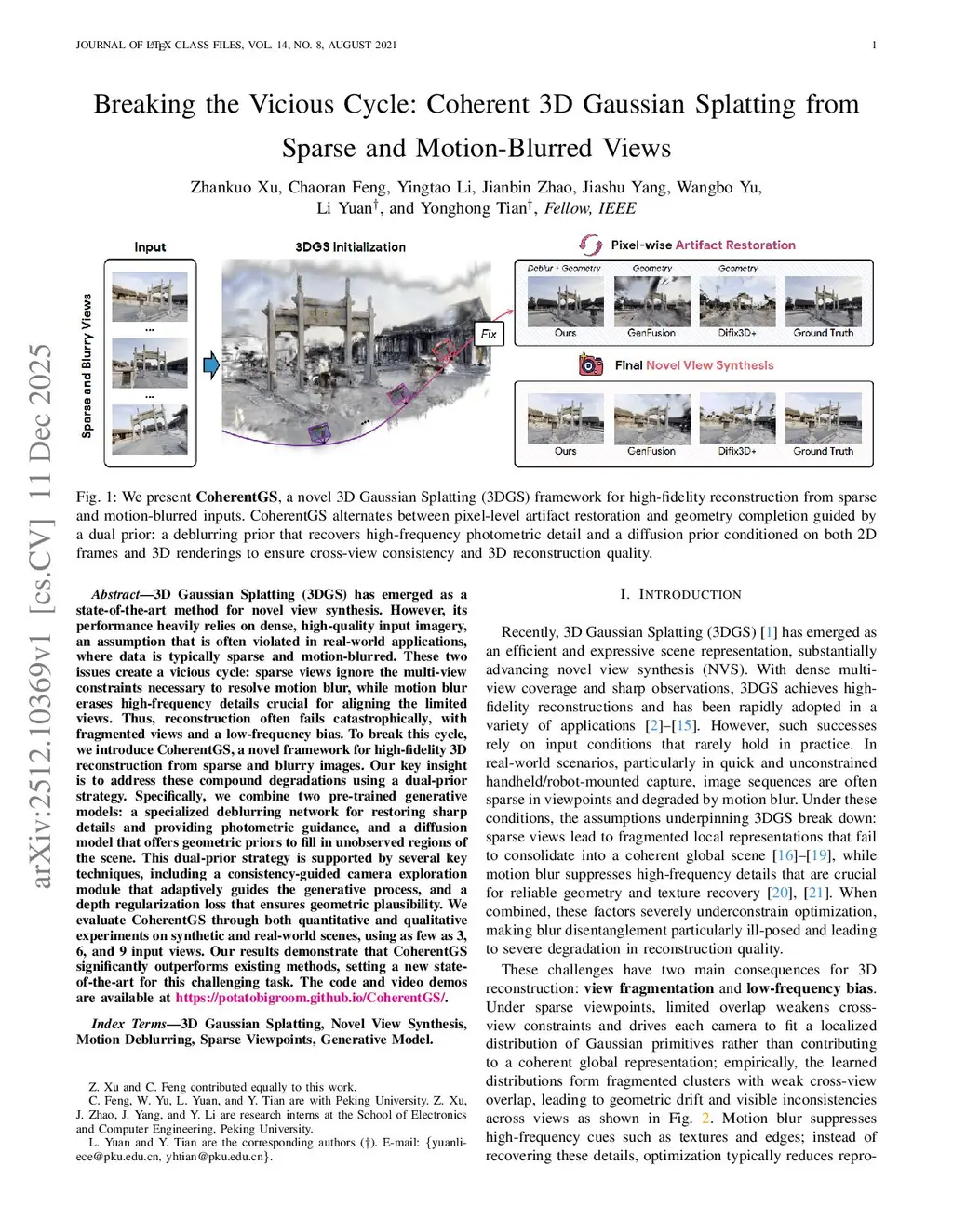 Breaking the Vicious Cycle: Coherent 3D Gaussian Splatting from Sparse and Motion-Blurred Views