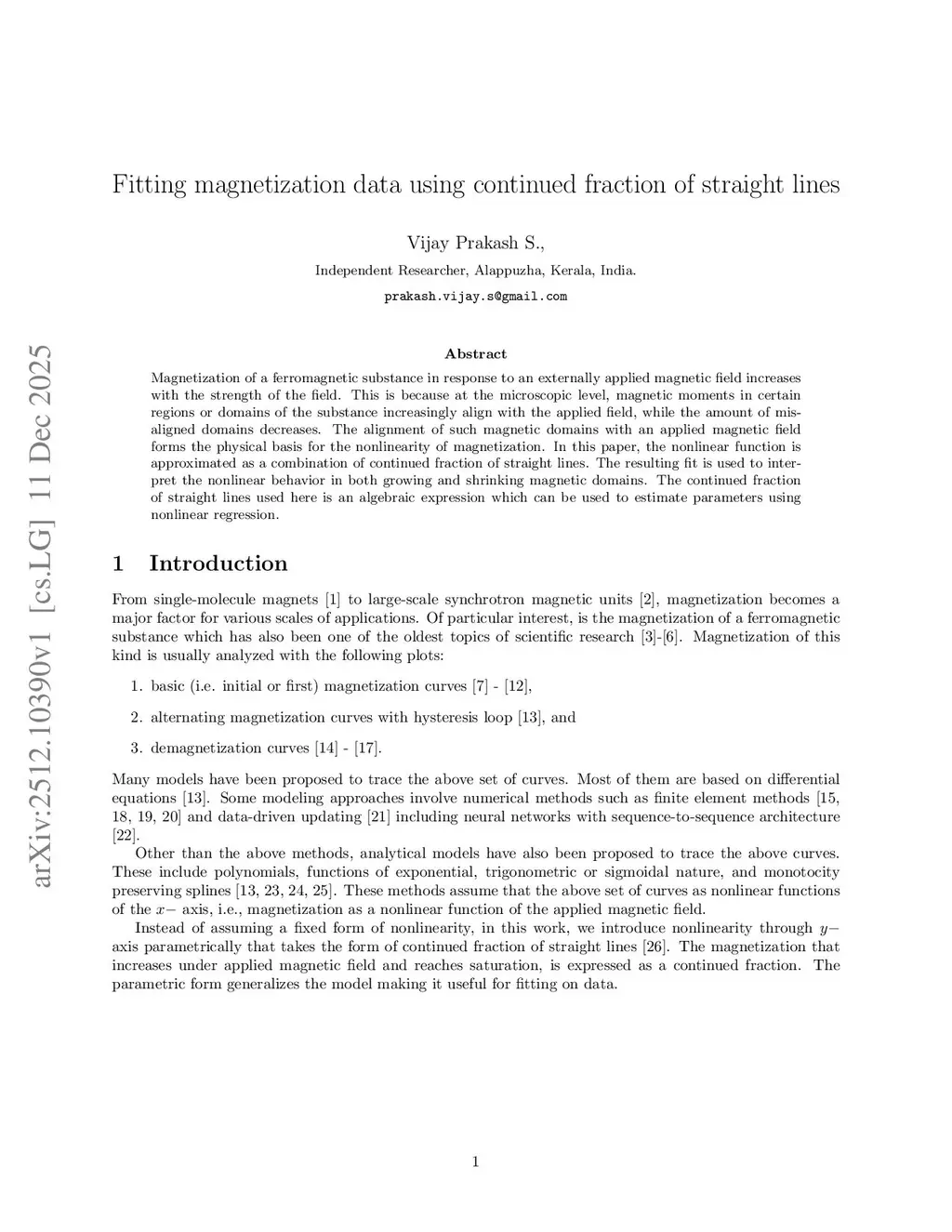 Fitting magnetization data using continued fraction of straight lines