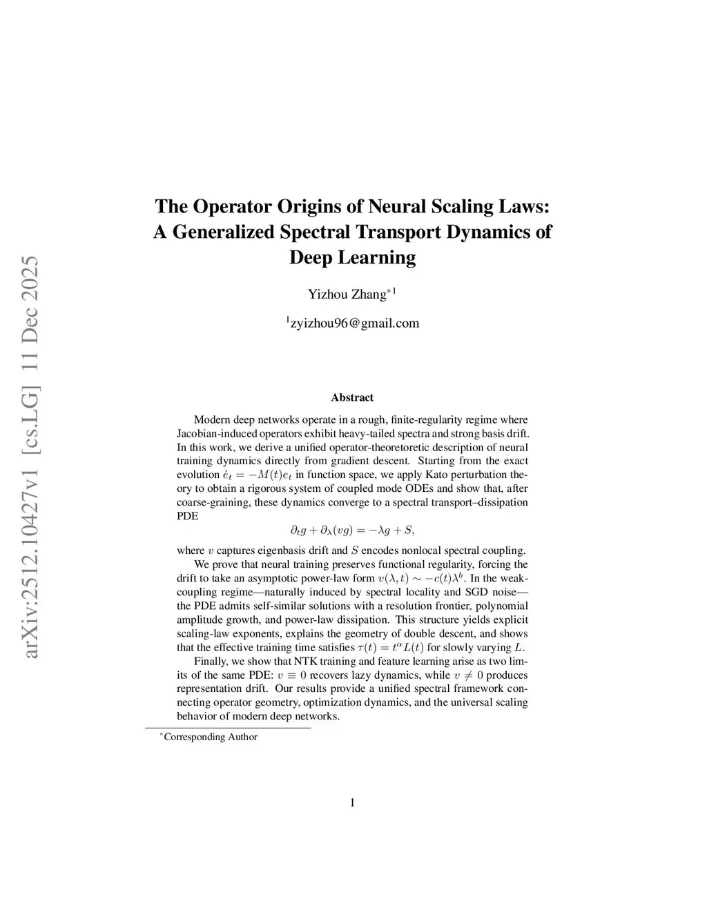 Neural scaling laws and double-descent phenomena suggest that deep-network training obeys a simple macroscopic structure despite highly nonlinear optimization dynamics. We derive such structure directly from gradient descent in function space. For mean-squared error loss, the training error evolves as with , a time-dependent self-adjoint operator induced by the network Jacobian. Using Kato perturbation theory, we obtain an exact system of coupled modewise ODEs in the instantaneous eigenbasis of .To extract macroscopic behavior, we introduce a logarithmic spectral-shell coarse-graining and track quadratic error energy across shells. Microscopic interactions within each shell cancel identically at the energy level, so shell energies evolve only through dissipation and external inter-shell interactions. We formalize this via a \emph{renormalizable shell-dynamics} assumption, under which cumulative microscopic effects reduce to a controlled net flux across shell boundaries.Assuming an effective power-law spectral transport in a relevant resolution range, the shell dynamics admits a self-similar solution with a moving resolution frontier and explicit scaling exponents. This framework explains neural scaling laws and double descent, and unifies lazy (NTK-like) training and feature learning as two limits of the same spectral-shell dynamics.