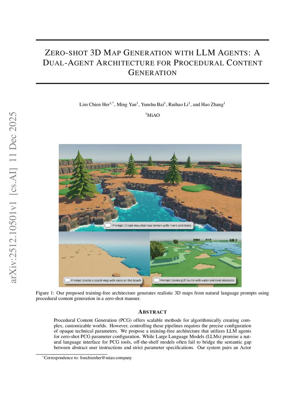 Zero-shot 3D Map Generation with LLM Agents: A Dual-Agent Architecture for Procedural Content Generation