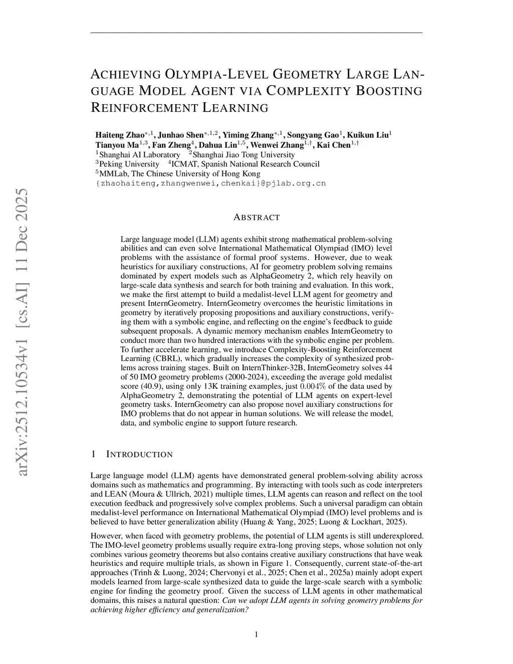 Achieving Olympia-Level Geometry Large Language Model Agent via Complexity Boosting Reinforcement Learning