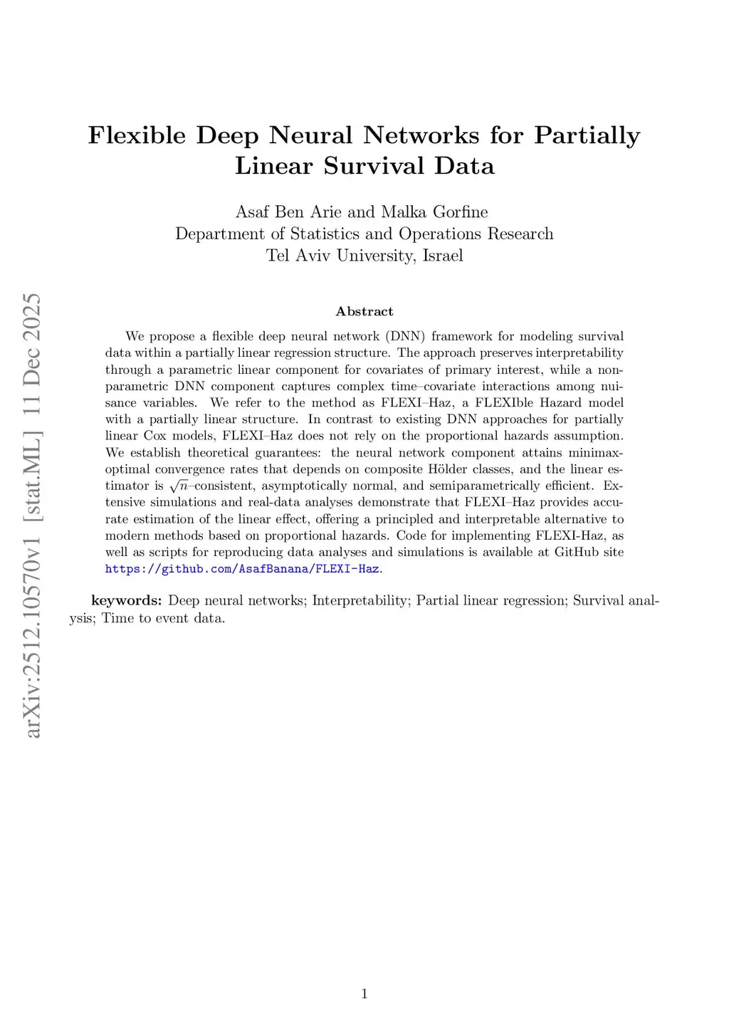 We propose a flexible deep neural network (DNN) framework for modeling survival data within a partially linear regression structure. The approach preserves interpretability through a parametric linear component for covariates of primary interest, while a nonparametric DNN component captures complex time-covariate interactions among nuisance variables. We refer to the method as FLEXI-Haz, a flexible hazard model with a partially linear structure. In contrast to existing DNN approaches for partially linear Cox models, FLEXI-Haz does not rely on the proportional hazards assumption. We establish theoretical guarantees: the neural network component attains minimax-optimal convergence rates based on composite Holder classes, and the linear estimator is root-n consistent, asymptotically normal, and semiparametrically efficient. Extensive simulations and real-data analyses demonstrate that FLEXI-Haz provides accurate estimation of the linear effect, offering a principled and interpretable alternative to modern methods based on proportional hazards. Code for implementing FLEXI-Haz, as well as scripts for reproducing data analyses and simulations, is available at:this https URL