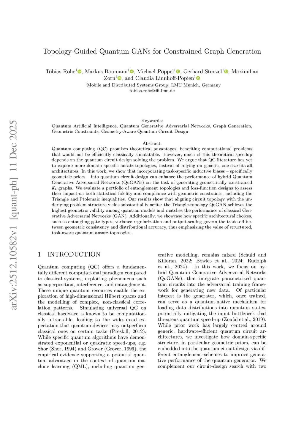 Quantum computing (QC) promises theoretical advantages, benefiting computational problems that would not be efficiently classically simulatable. However, much of this theoretical speedup depends on the quantum circuit design solving the problem. We argue that QC literature has yet to explore more domain specific ansatz-topologies, instead of relying on generic, one-size-fits-all architectures. In this work, we show that incorporating task-specific inductive biases -- specifically geometric priors -- into quantum circuit design can enhance the performance of hybrid Quantum Generative Adversarial Networks (QuGANs) on the task of generating geometrically constrained K4 graphs. We evaluate a portfolio of entanglement topologies and loss-function designs to assess their impact on both statistical fidelity and compliance with geometric constraints, including the Triangle and Ptolemaic inequalities. Our results show that aligning circuit topology with the underlying problem structure yields substantial benefits: the Triangle-topology QuGAN achieves the highest geometric validity among quantum models and matches the performance of classical Generative Adversarial Networks (GAN). Additionally, we showcase how specific architectural choices, such as entangling gate types, variance regularization and output-scaling govern the trade-off between geometric consistency and distributional accuracy, thus emphasizing the value of structured, task-aware quantum ansatz-topologies.