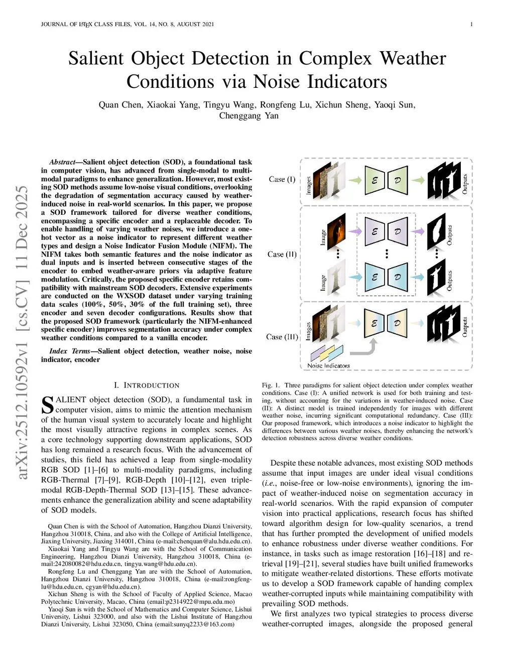 Salient Object Detection in Complex Weather Conditions via Noise Indicators