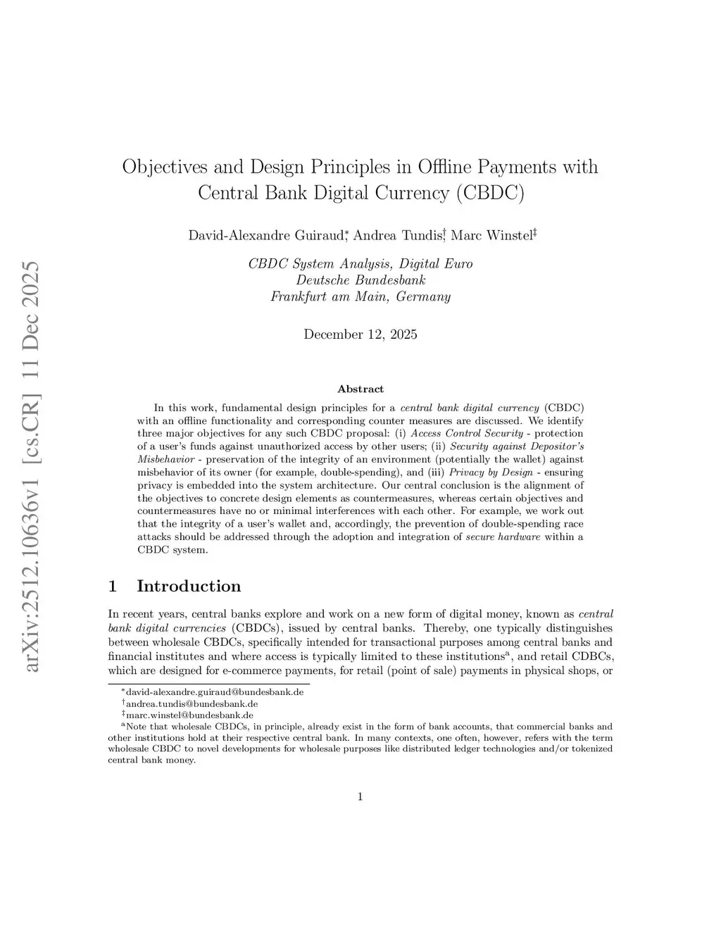 In this work, fundamental design principles for a central bank digital currency (CBDC) with an offline functionality and corresponding counter measures are discussed. We identify three major objectives for any such CBDC proposal:(i) Access Control Security - protection of a user's funds against unauthorized access by other users; (ii) Security against Depositor's Misbehavior - preservation of the integrity of an environment (potentially the wallet) against misbehavior of its owner (for example, double-spending), and (iii) Privacy by Design - ensuring privacy is embedded into the system architecture. Our central conclusion is the alignment of the objectives to concrete design elements as countermeasures, whereas certain objectives and countermeasures have no or minimal interferences with each other. For example, we work out that the integrity of a user's wallet and, accordingly, the prevention of double-spending race attacks should be addressed through the adoption and integration of \textit{secure hardware} within a CBDC system.