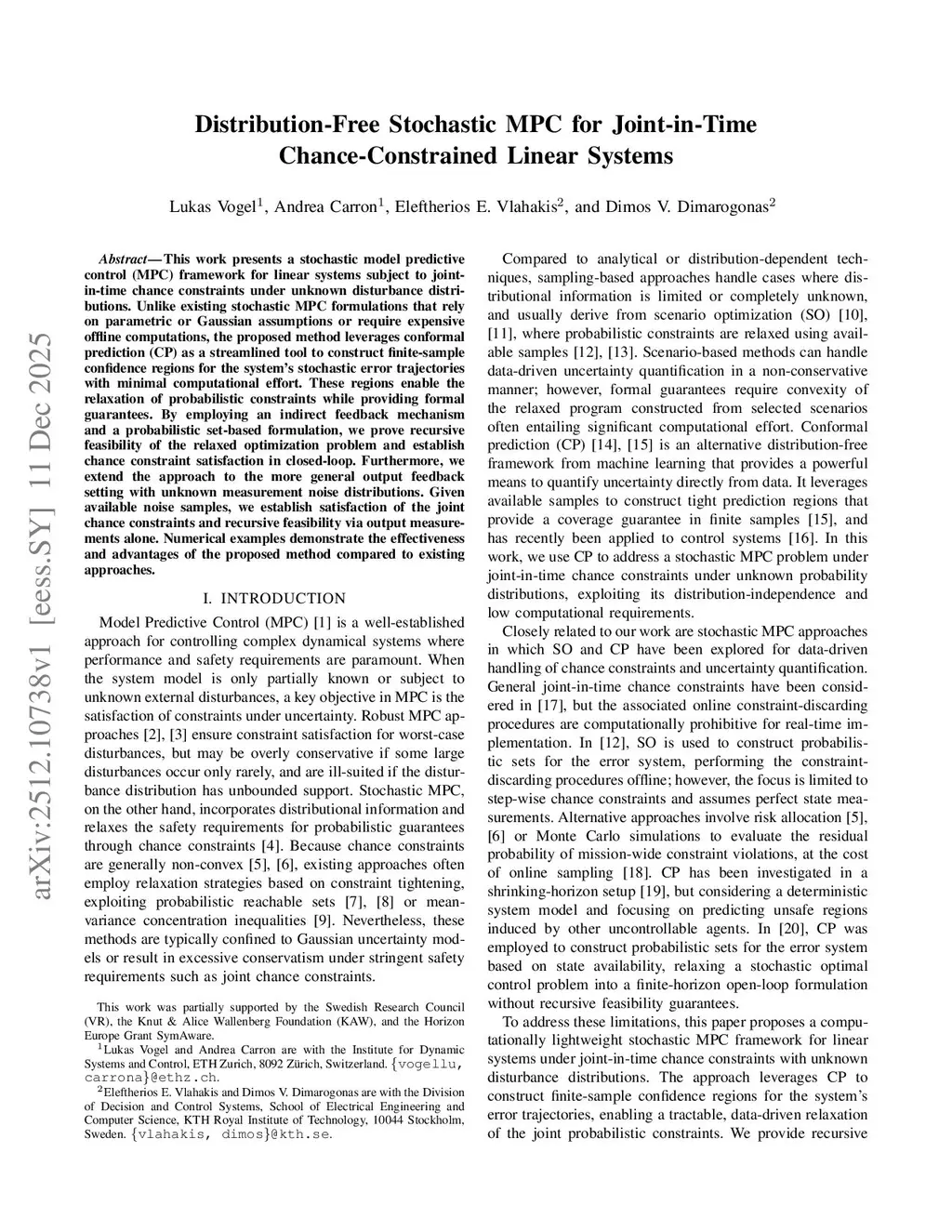This work presents a stochastic model predictive control (MPC) framework for linear systems subject to joint-in-time chance constraints under unknown disturbance distributions. Unlike existing stochastic MPC formulations that rely on parametric or Gaussian assumptions or require expensive offline computations, the proposed method leverages conformal prediction (CP) as a streamlined tool to construct finite-sample confidence regions for the system's stochastic error trajectories with minimal computational effort. These regions enable the relaxation of probabilistic constraints while providing formal guarantees. By employing an indirect feedback mechanism and a probabilistic set-based formulation, we prove recursive feasibility of the relaxed optimization problem and establish chance constraint satisfaction in closed-loop. Furthermore, we extend the approach to the more general output feedback setting with unknown measurement noise distributions. Given available noise samples, we establish satisfaction of the joint chance constraints and recursive feasibility via output measurements alone. Numerical examples demonstrate the effectiveness and advantages of the proposed method compared to existing approaches.