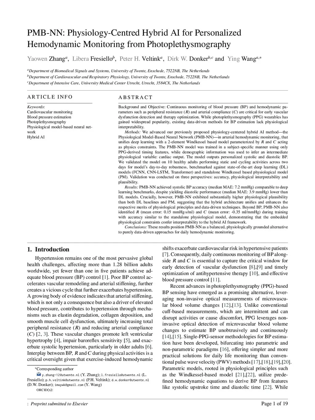 PMB-NN: Physiology-Centred Hybrid AI for Personalized Hemodynamic Monitoring from Photoplethysmography