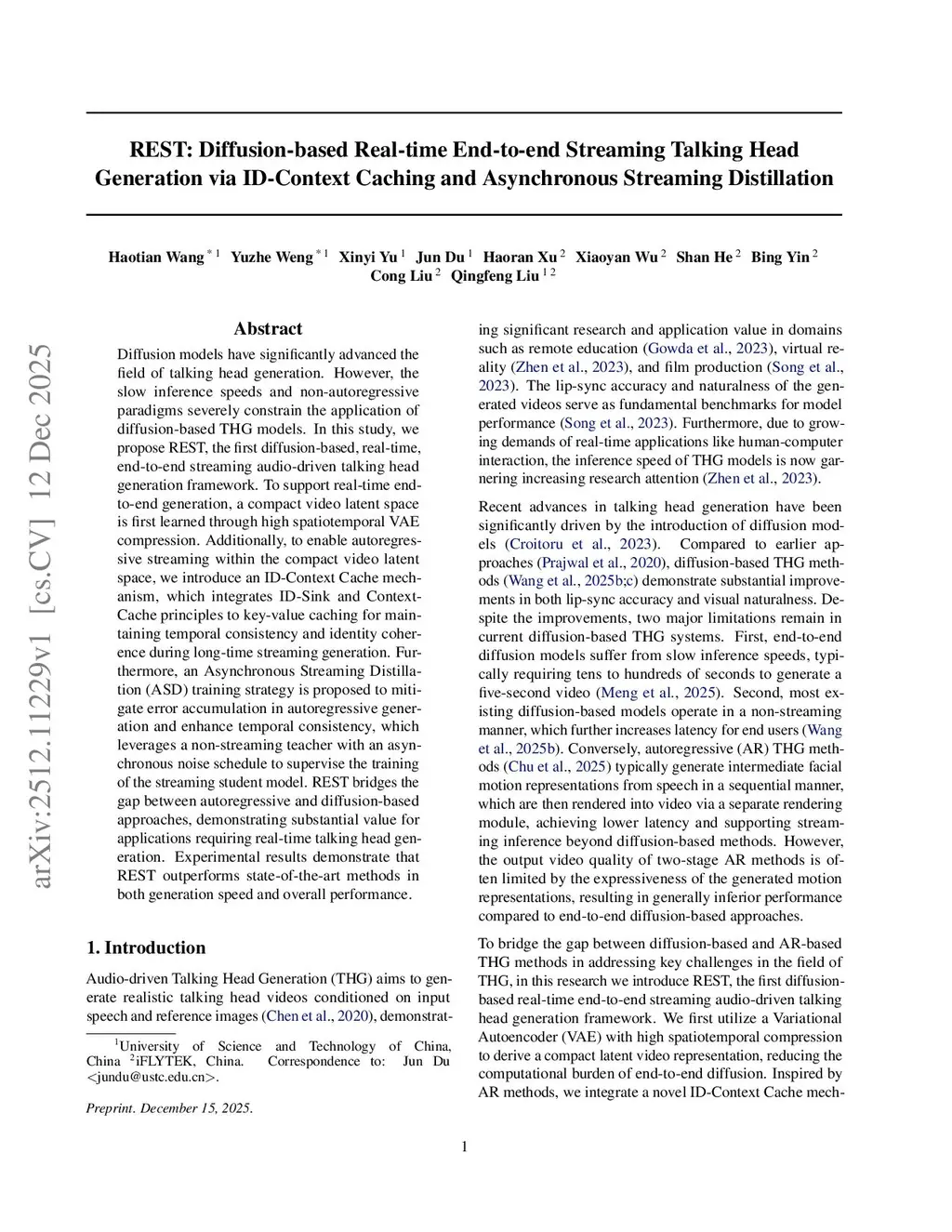 Diffusion models have significantly advanced the field of talking head generation (THG). However, slow inference speeds and prevalent non-autoregressive paradigms severely constrain the application of diffusion-based THG models. In this study, we propose REST, a pioneering diffusion-based, real-time, end-to-end streaming audio-driven talking head generation framework. To support real-time end-to-end generation, a compact video latent space is first learned through a spatiotemporal variational autoencoder with a high compression ratio. Additionally, to enable semi-autoregressive streaming within the compact video latent space, we introduce an ID-Context Cache mechanism, which integrates ID-Sink and Context-Cache principles into key-value caching for maintaining identity consistency and temporal coherence during long-term streaming generation. Furthermore, an Asynchronous Streaming Distillation (ASD) strategy is proposed to mitigate error accumulation and enhance temporal consistency in streaming generation, leveraging a non-streaming teacher with an asynchronous noise schedule to supervise the streaming student. REST bridges the gap between autoregressive and diffusion-based approaches, achieving a breakthrough in efficiency for applications requiring real-time THG. Experimental results demonstrate that REST outperforms state-of-the-art methods in both generation speed and overall performance.