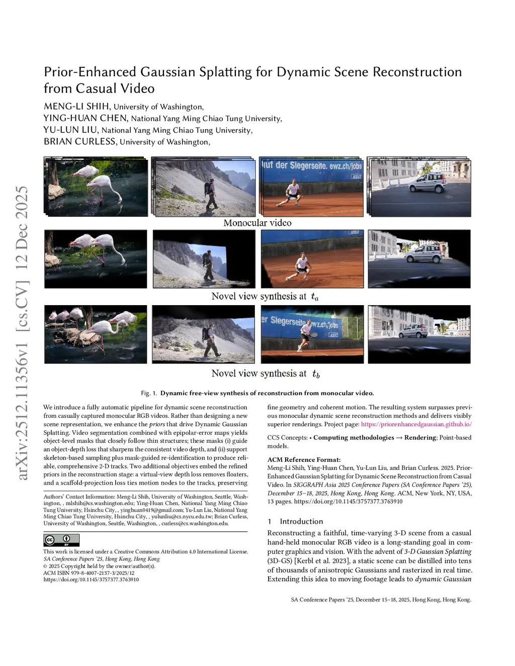 Prior-Enhanced Gaussian Splatting for Dynamic Scene Reconstruction from Casual Video