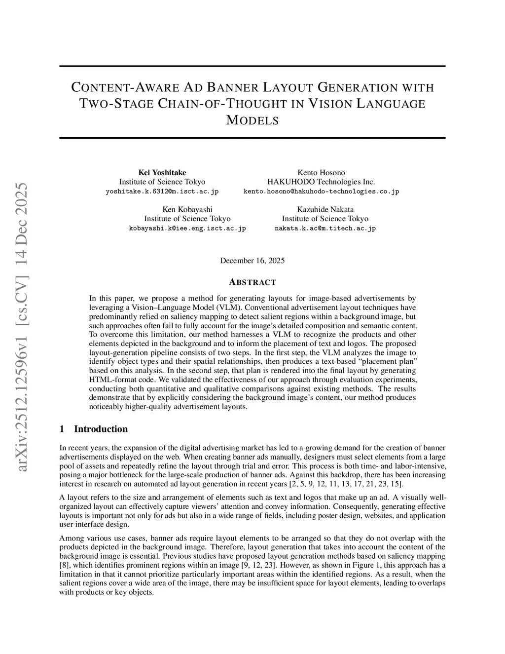 Content-Aware Ad Banner Layout Generation with Two-Stage Chain-of-Thought in Vision Language Models