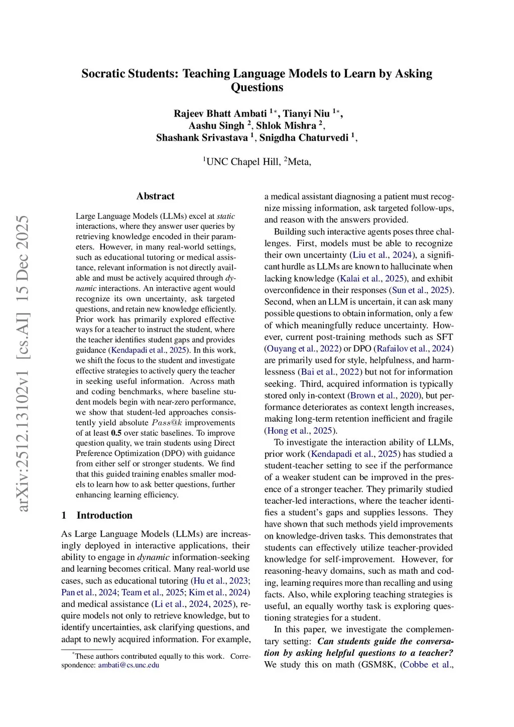 Socratic Students: Teaching Language Models to Learn by Asking Questions