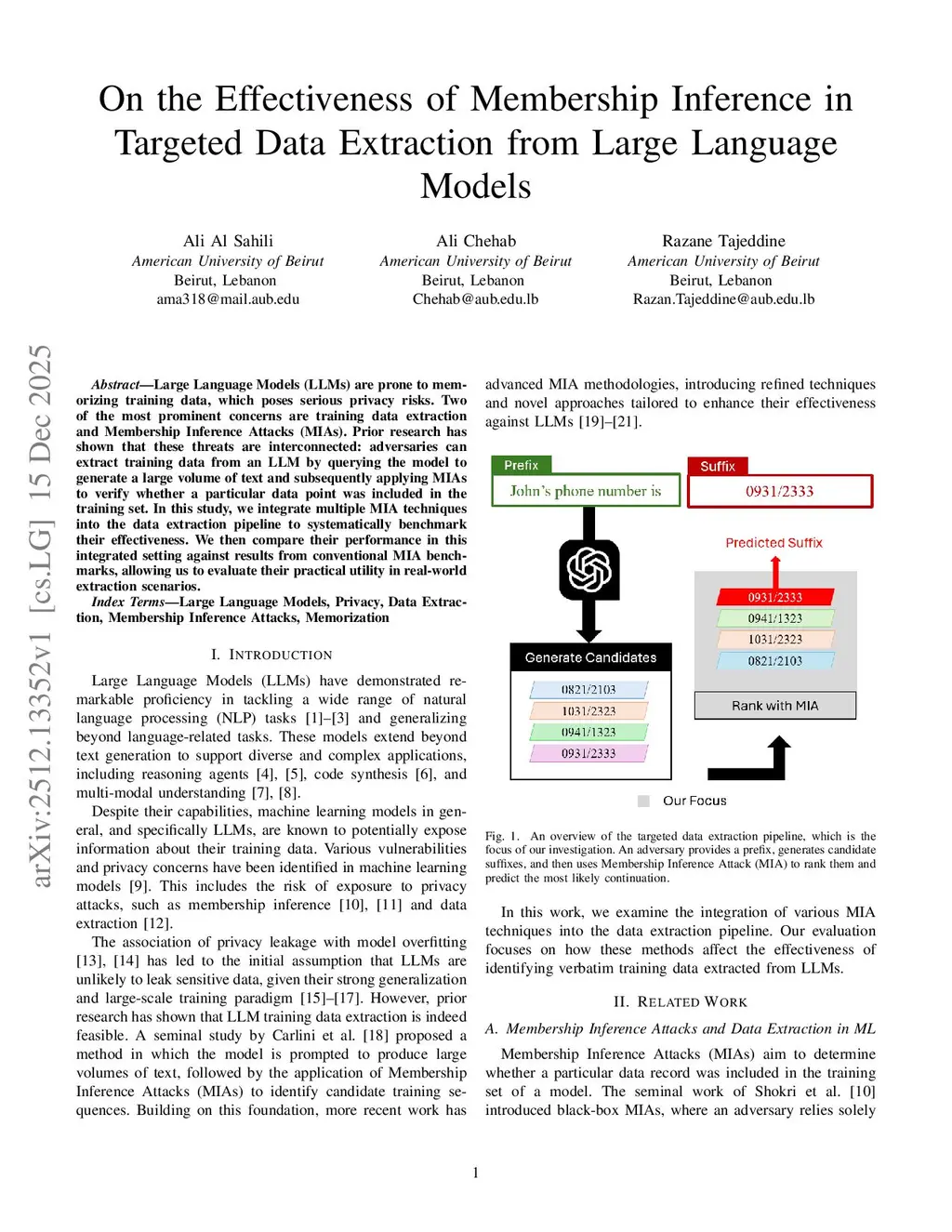 On the Effectiveness of Membership Inference in Targeted Data Extraction from Large Language Models