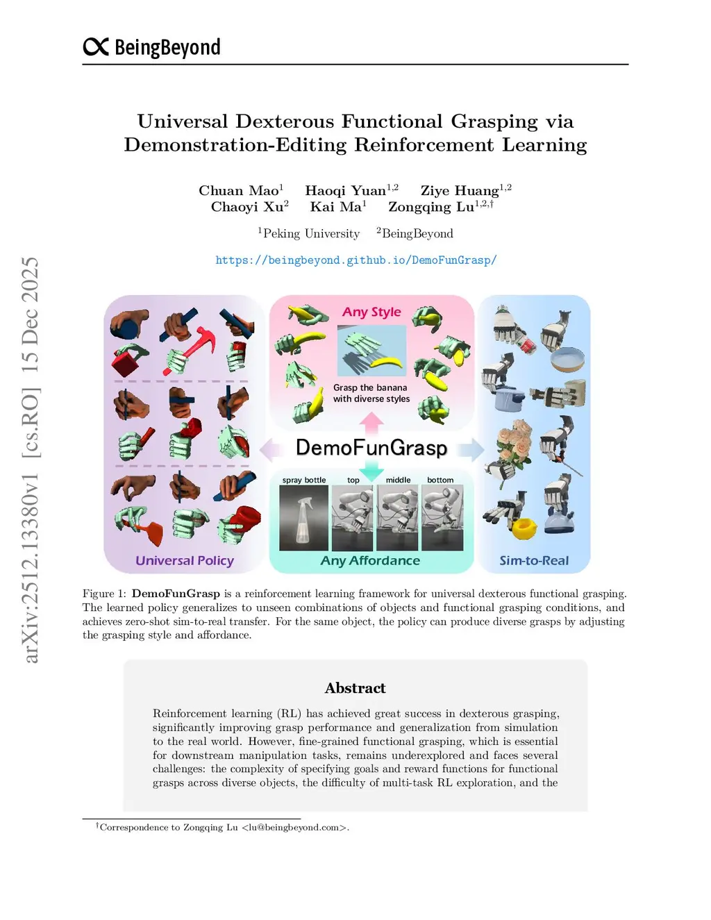 Universal Dexterous Functional Grasping via Demonstration-Editing Reinforcement Learning