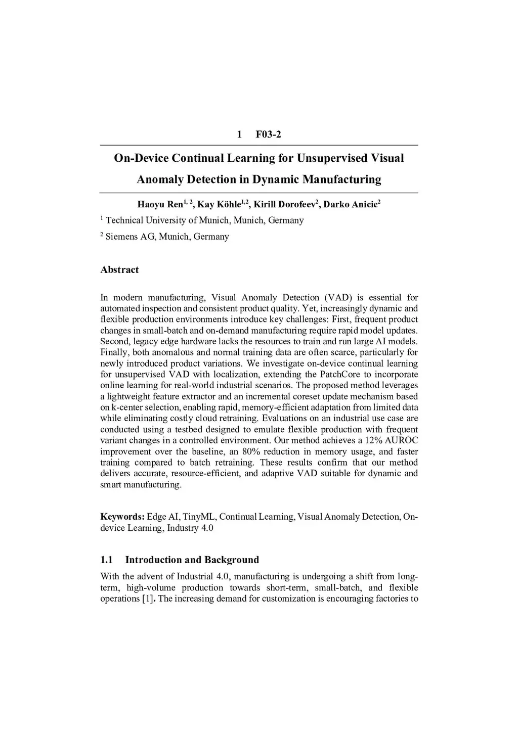 On-Device Continual Learning for Unsupervised Visual Anomaly Detection in Dynamic Manufacturing