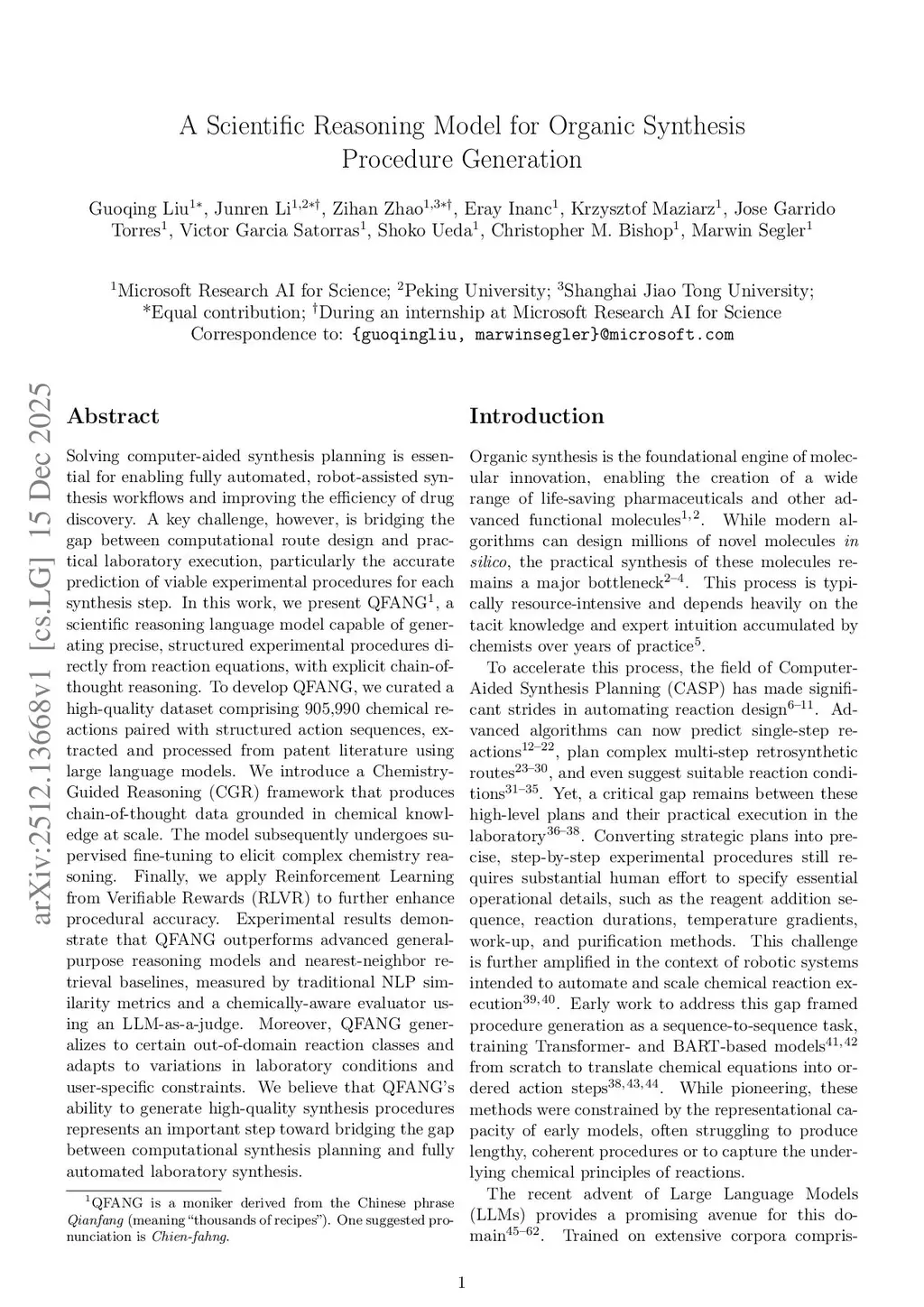 A Scientific Reasoning Model for Organic Synthesis Procedure Generation