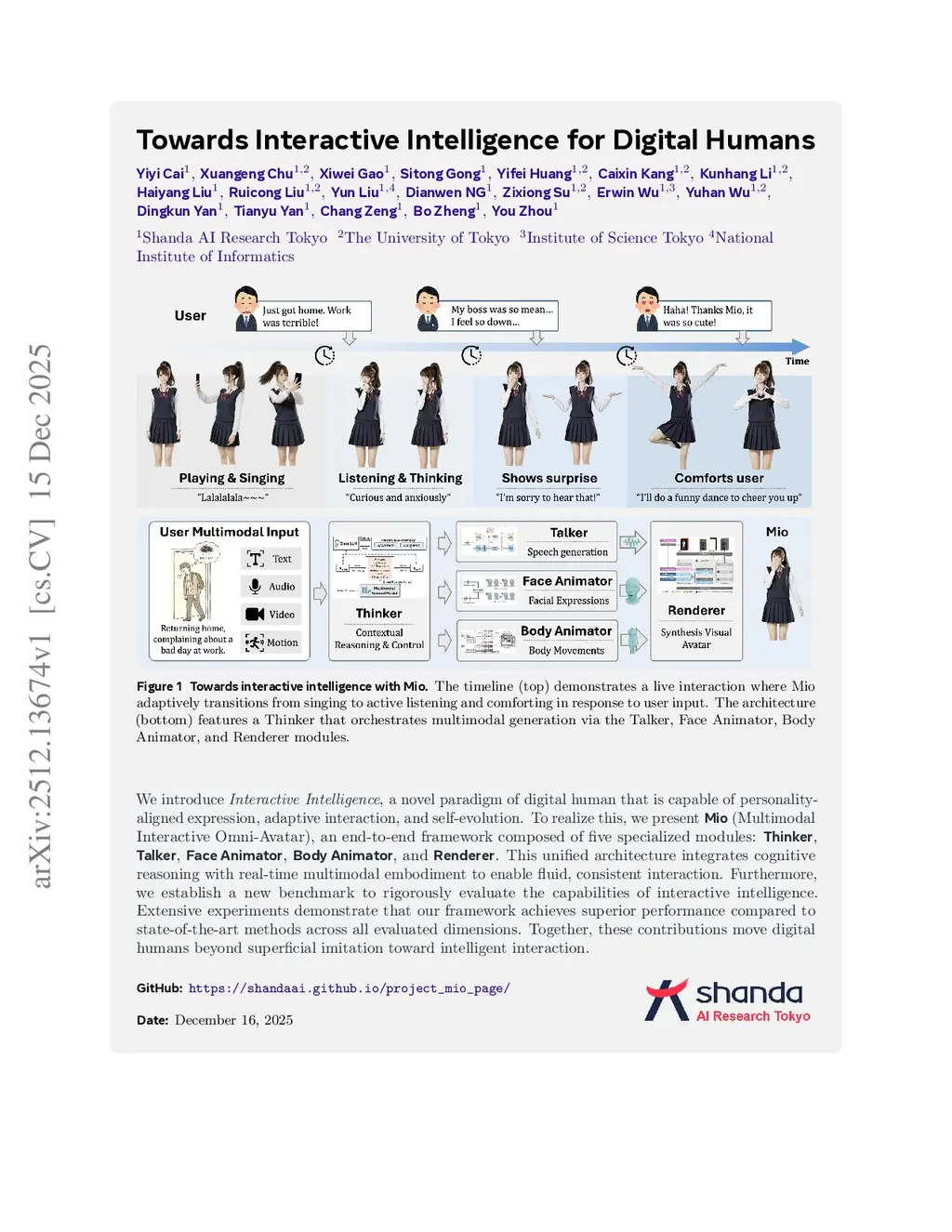Towards Interactive Intelligence for Digital Humans