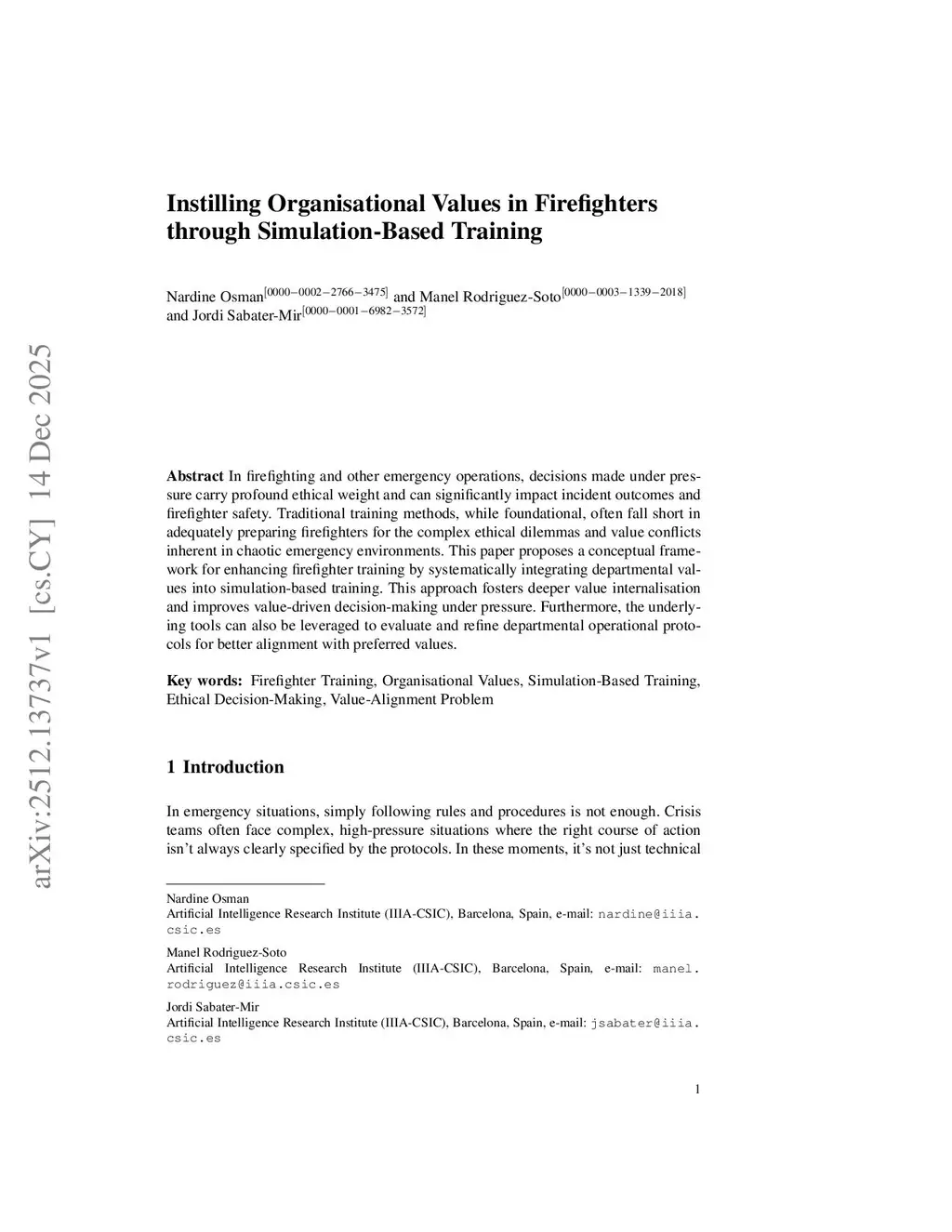 Instilling Organisational Values in Firefighters through Simulation-Based Training