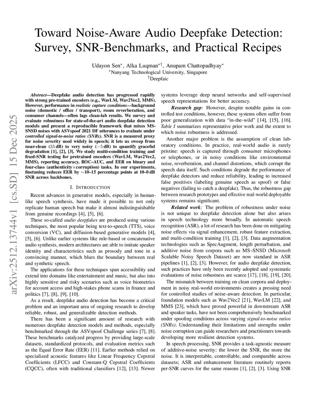 Toward Noise-Aware Audio Deepfake Detection: Survey, SNR-Benchmarks, and Practical Recipes