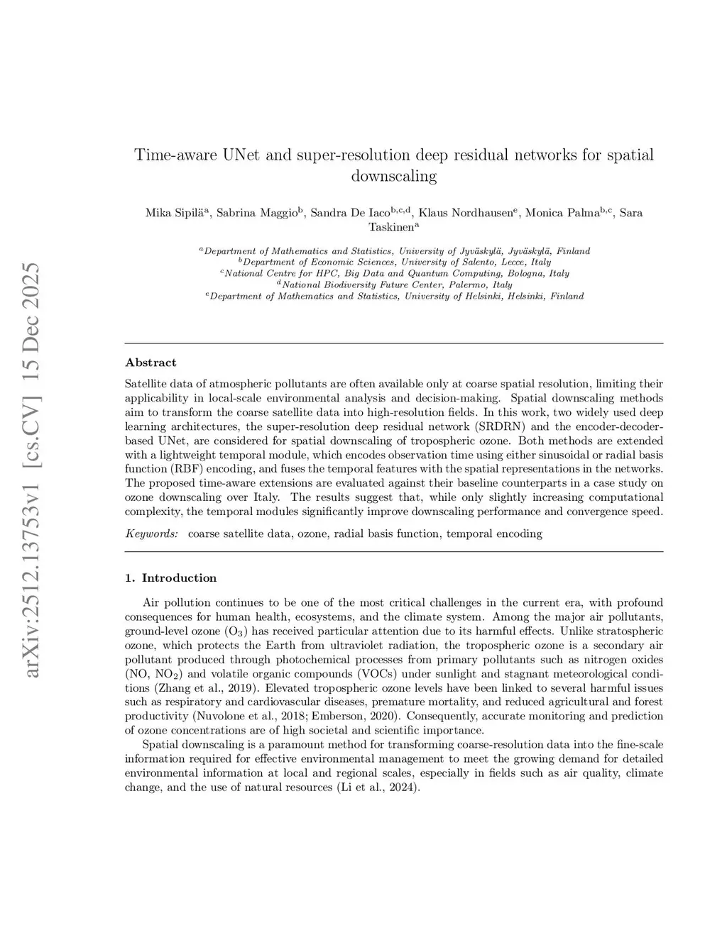 Time-aware UNet and super-resolution deep residual networks for spatial downscaling