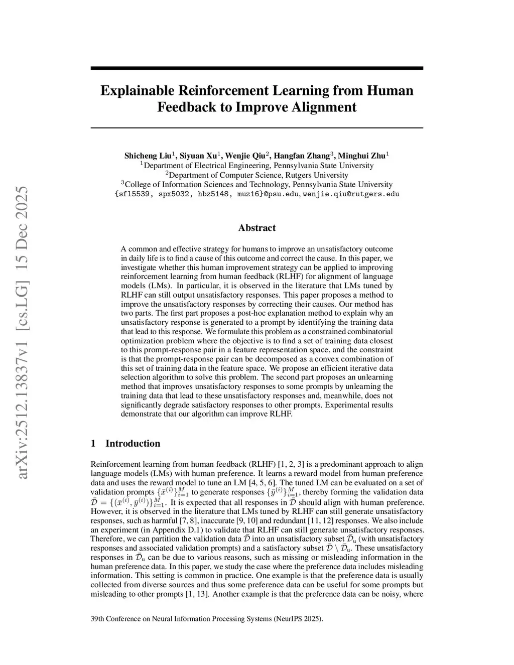 Explainable reinforcement learning from human feedback to improve alignment