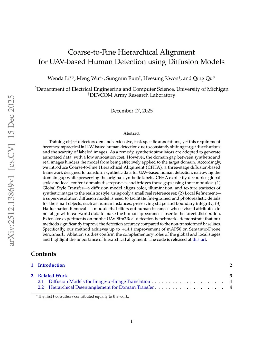 Coarse-to-Fine Hierarchical Alignment for UAV-based Human Detection using Diffusion Models