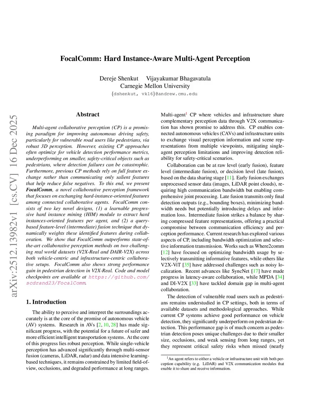 FocalComm: Hard Instance-Aware Multi-Agent Perception