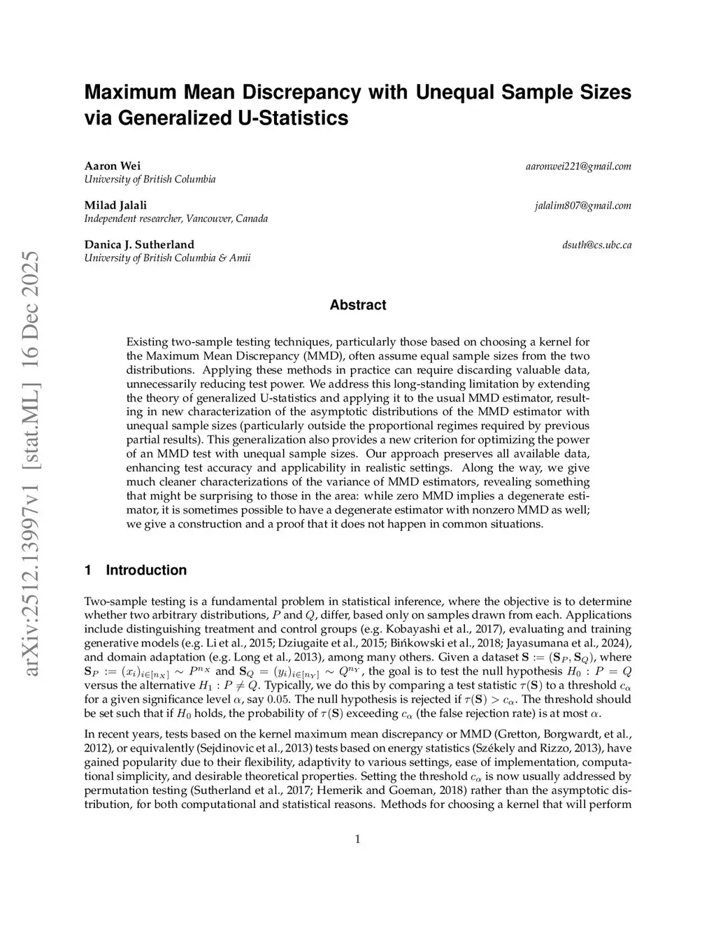 Existing two-sample testing techniques, particularly those based on choosing a kernel for the Maximum Mean Discrepancy (MMD), often assume equal sample sizes from the two distributions. Applying these methods in practice can require discarding valuable data, unnecessarily reducing test power. We address this long-standing limitation by extending the theory of generalized U-statistics and applying it to the usual MMD estimator, resulting in new characterization of the asymptotic distributions of the MMD estimator with unequal sample sizes (particularly outside the proportional regimes required by previous partial results). This generalization also provides a new criterion for optimizing the power of an MMD test with unequal sample sizes. Our approach preserves all available data, enhancing test accuracy and applicability in realistic settings. Along the way, we give much cleaner characterizations of the variance of MMD estimators, revealing something that might be surprising to those in the area: while zero MMD implies a degenerate estimator, it is sometimes possible to have a degenerate estimator with nonzero MMD as well; we give a construction and a proof that it does not happen in common situations.