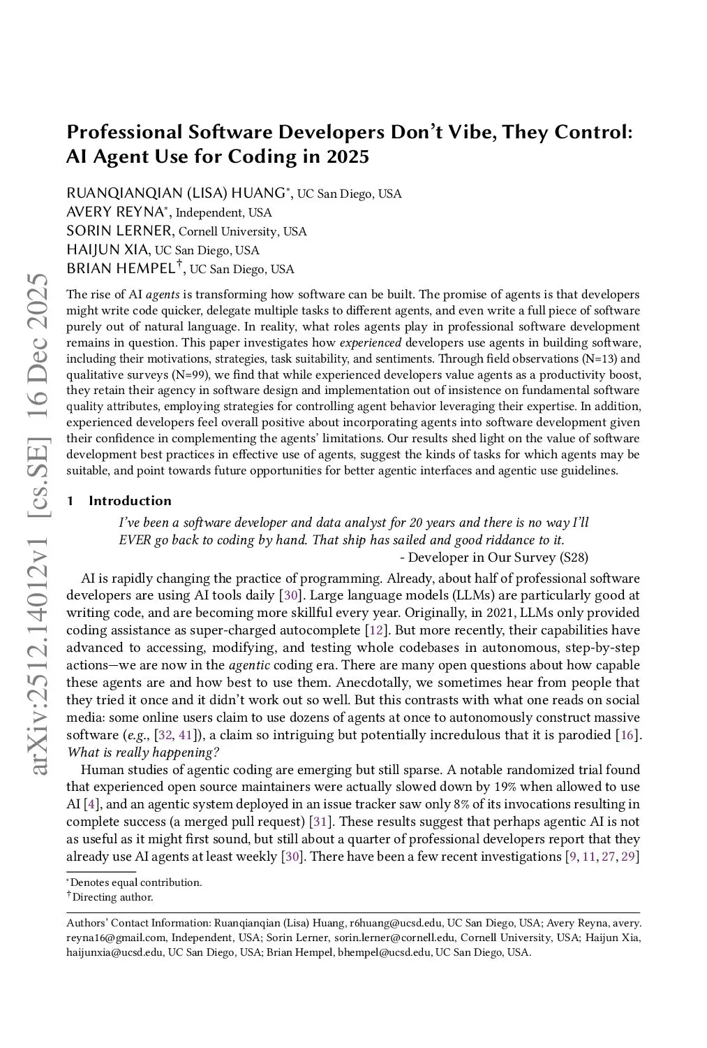 Professional Software Developers Don't Vibe, They Control: AI Agent Use for Coding in 2025