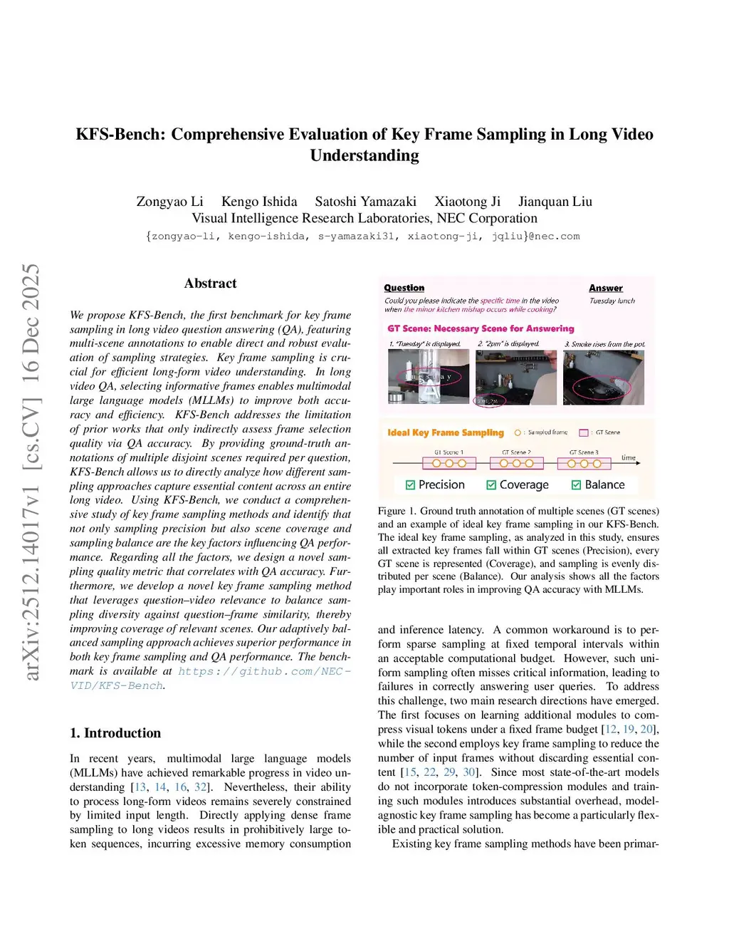 We propose KFS-Bench, the first benchmark for key frame sampling in long video question answering (QA), featuring multi-scene annotations to enable direct and robust evaluation of sampling strategies. Key frame sampling is crucial for efficient long-form video understanding. In long video QA, selecting informative frames enables multimodal large language models (MLLMs) to improve both accuracy and efficiency. KFS-Bench addresses the limitation of prior works that only indirectly assess frame selection quality via QA accuracy. By providing ground-truth annotations of multiple disjoint scenes required per question, KFS-Bench allows us to directly analyze how different sampling approaches capture essential content across an entire long video. Using KFS-Bench, we conduct a comprehensive study of key frame sampling methods and identify that not only sampling precision but also scene coverage and sampling balance are the key factors influencing QA performance. Regarding all the factors, we design a novel sampling quality metric that correlates with QA accuracy. Furthermore, we develop a novel key frame sampling method that leverages question-video relevance to balance sampling diversity against question-frame similarity, thereby improving coverage of relevant scenes. Our adaptively balanced sampling approach achieves superior performance in both key frame sampling and QA performance. The benchmark is available atthis https URL.